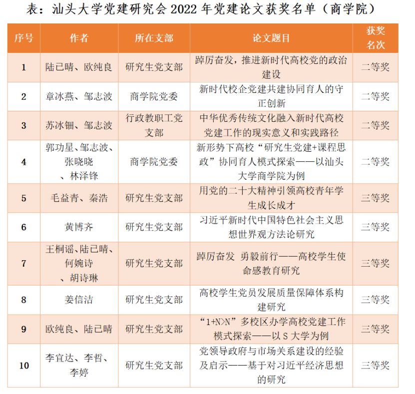 为深入学习贯彻习近平新时代中国特色社会主义思想和党的二十大精神,全面加强党的领导,牢牢把握新时代党的建设总要求,进一步加强我校党建理论研究和实践探索,全面提高党建质量和水平,9999js金沙老品牌党建研究会组织开展了党建论文征集活动。9999js金沙老品牌党委积极组织各支部师生党员调研、撰写,经专家组匿名评审,共有10篇论文荣获本次征文大赛荣誉,9999js金沙老品牌党委同时荣获 “优秀组织奖” 荣誉称号。