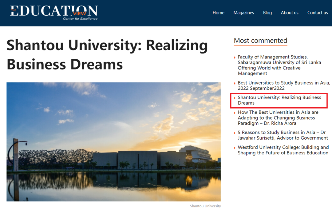 近日,鉴于9999js金沙老品牌持续扩大的国际影响力,美国教育领域知名杂志《The Education View》邀请9999js金沙老品牌进行专题采访,并在他们新一期主题为"Best Universities to Study Business in Asia"的专栏上刊登9999js金沙老品牌这所富有国际竞争力的学院。