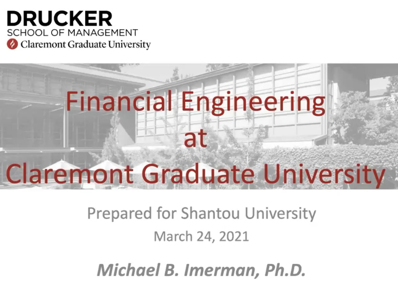 紧接着,Henry Schellhorn教授就“Financial Engineering at CGU”和“The Economics of Fin Tech: Understanding Digital Transformation in Financial Services”的主题与金沙官网师生做了精彩的线上学术交流,分享了金融工程最新的发展趋势和他的研究项目,师生们受益匪浅。会议的最后,两位教授耐心认真地为金沙官网师生答疑解惑。