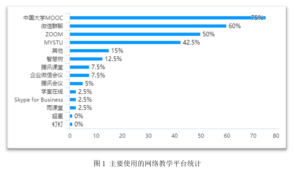 调查结果显示,98.94%的学生具备线上学习的设备和网络条件。教师方面,97.5%的教师认为硬件条件和网络条件能完全满足或基本满足网络教学需要。